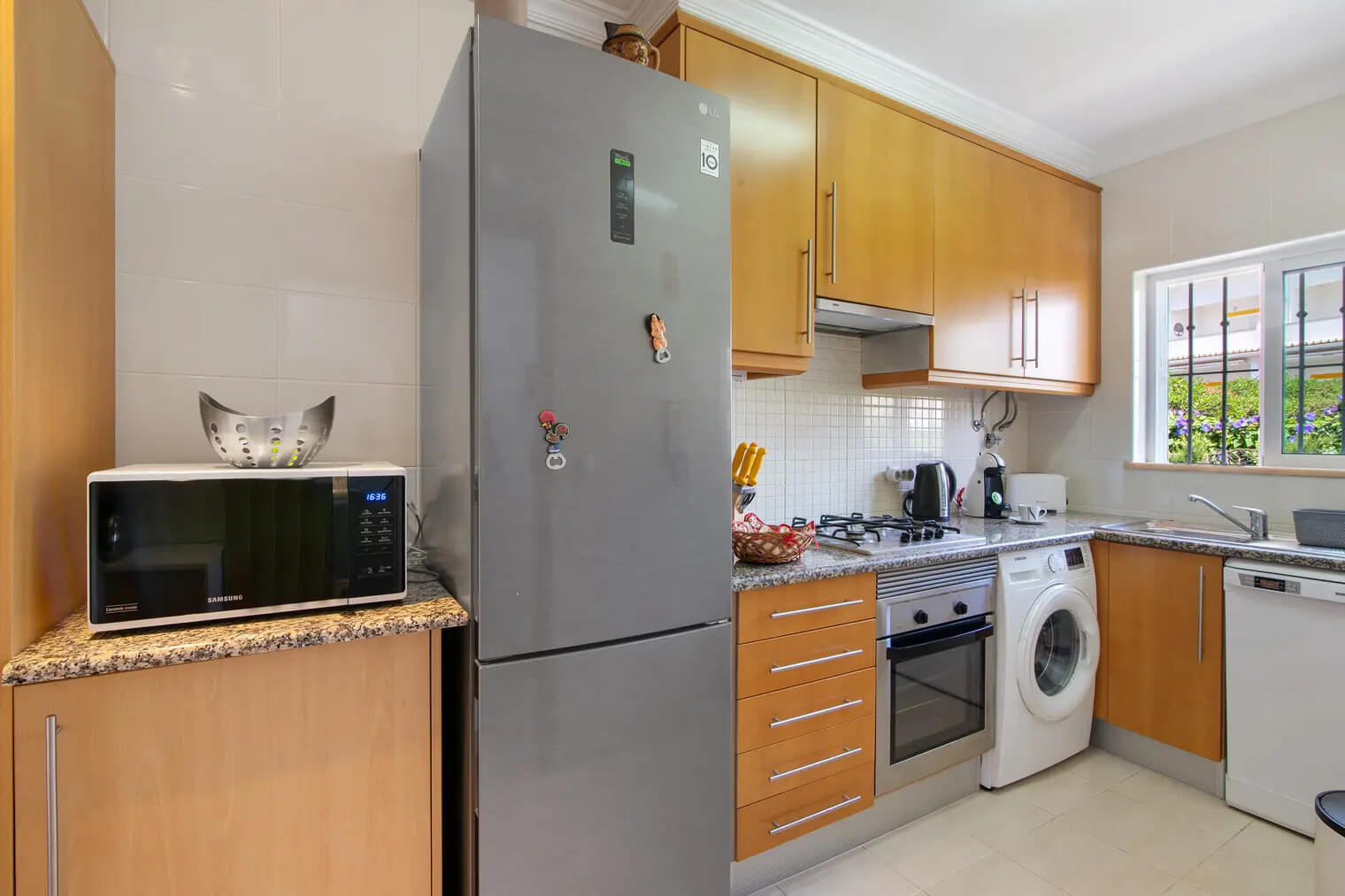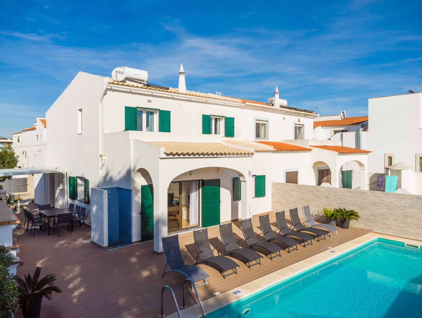- Comodidades: Aluguer de carro: Essencial, Ar Condicionado, Chaleira, Congelador, Fogão, Forno, Frigorífico, Máquina de Café, Máquina de Lavar Louça, Máquina de Lavar Roupa, Microondas, Piscina, Torradeira, TV por Cabo, Wi-Fi