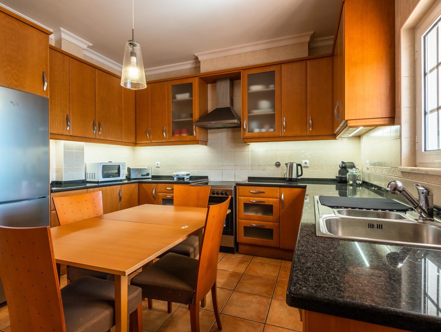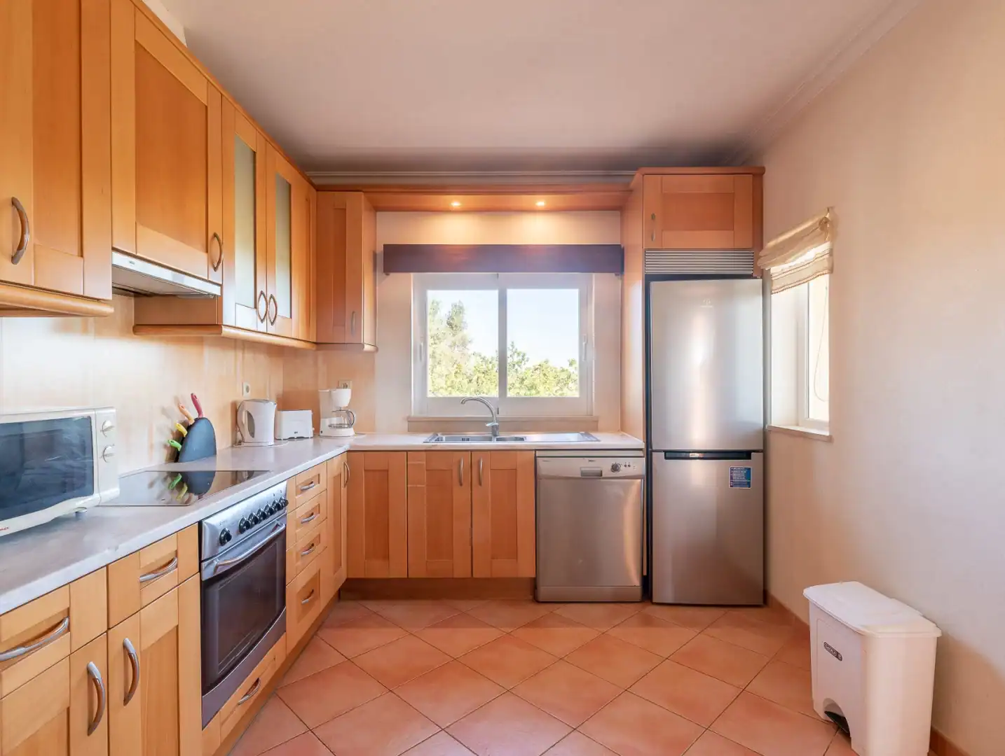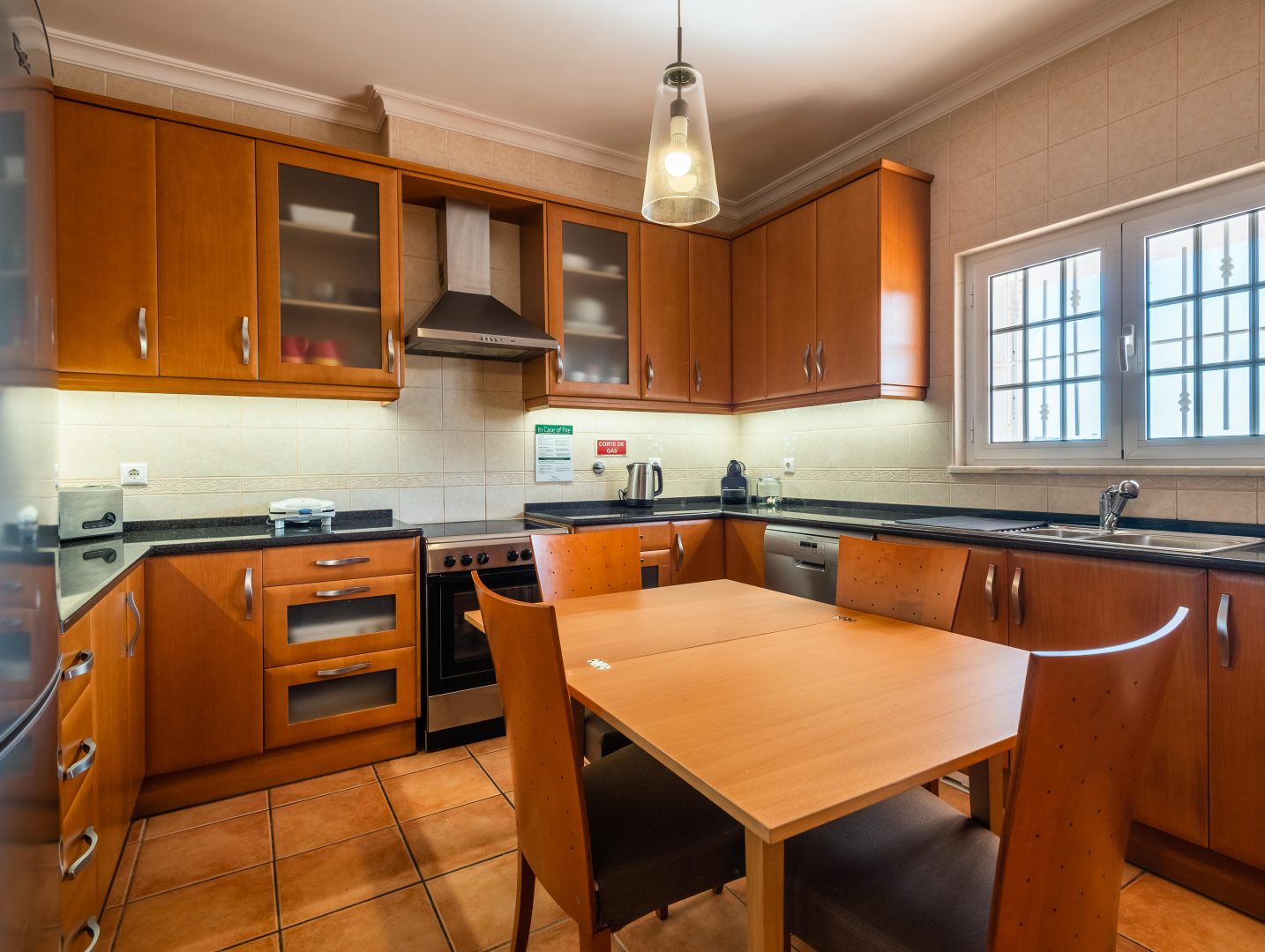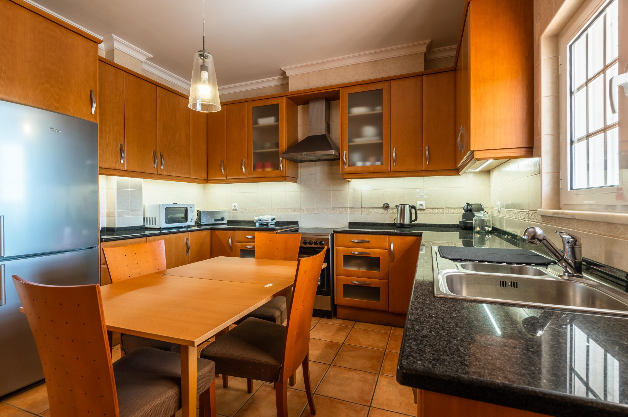 - Comodidades: Ar Condicionado, Chaleira, Congelador, Fogão, Forno, Frigorífico, Máquina de Café, Máquina de Lavar Louça, Microondas, Piscina, Torradeira, TV, Wi-Fi