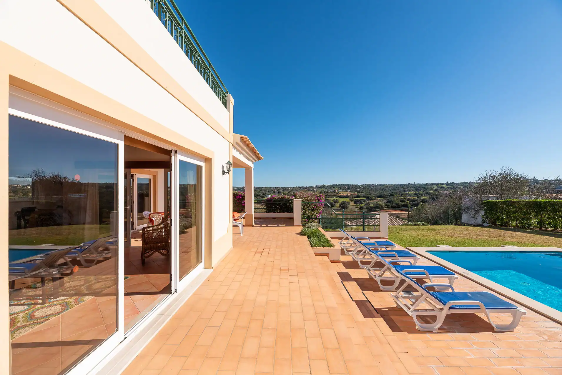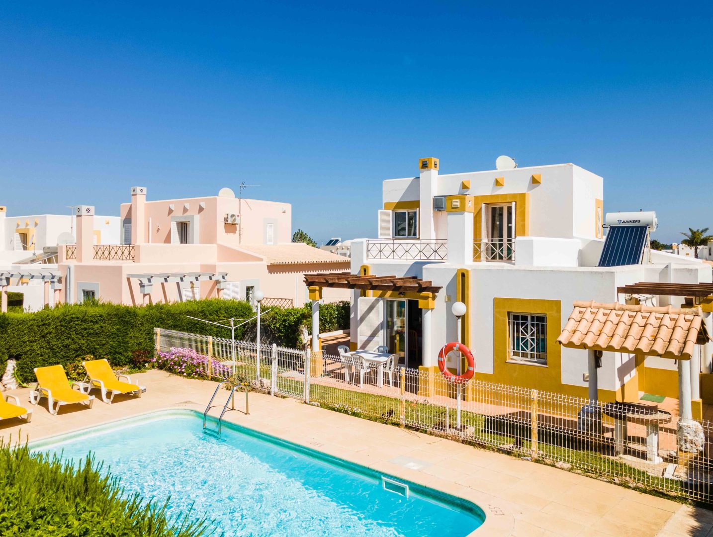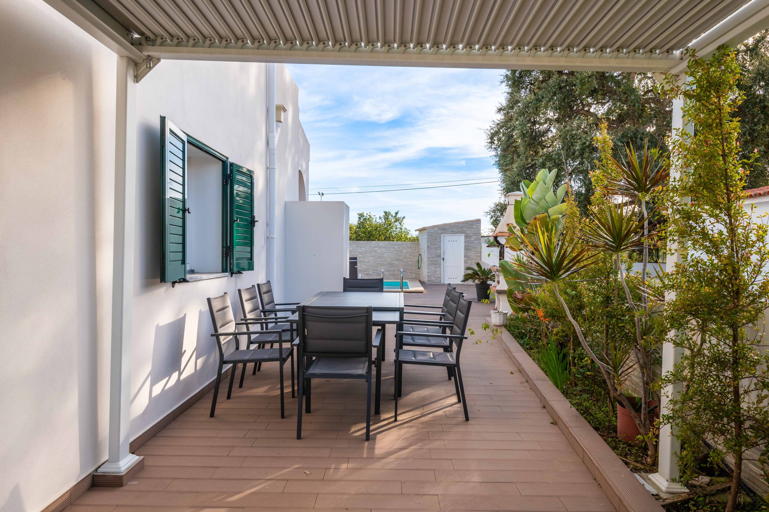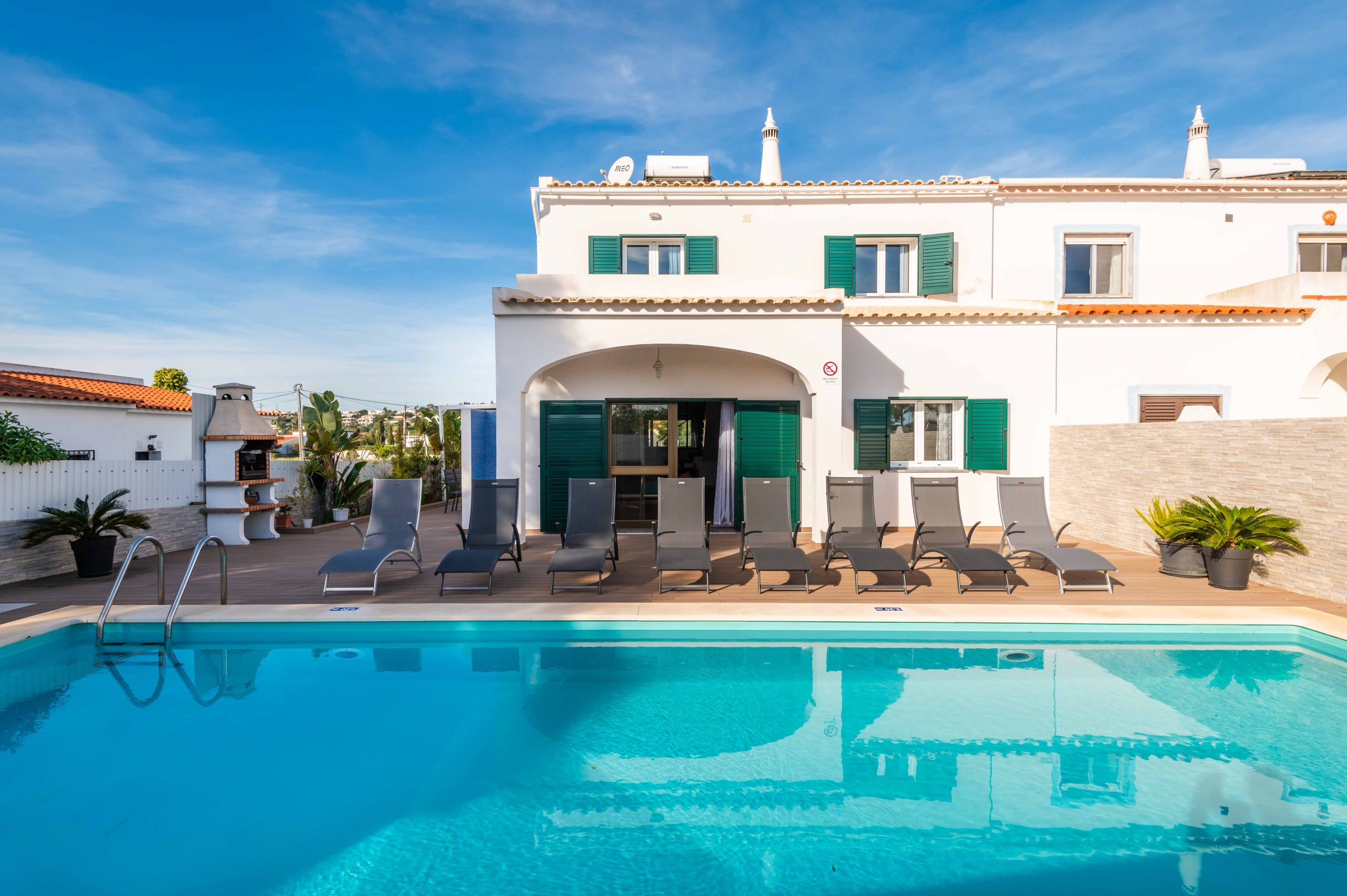 - Comodidades: Aluguer de carro: Essencial, Ar Condicionado, Chaleira, Forno, Máquina de Café, Máquina de Lavar Louça, Máquina de Lavar Roupa, Microondas, Piscina, Torradeira, TV, TV por Cabo, Wi-Fi