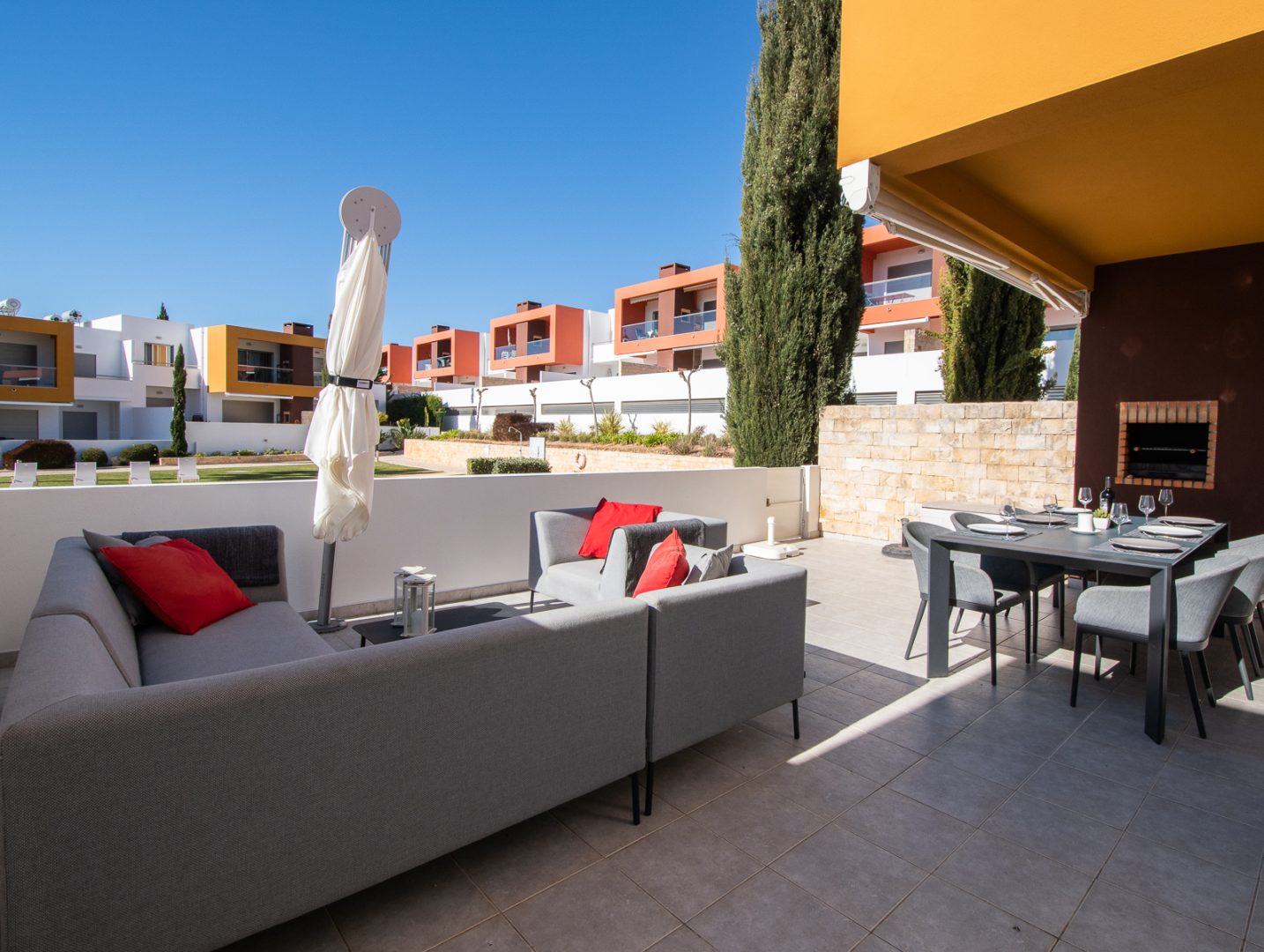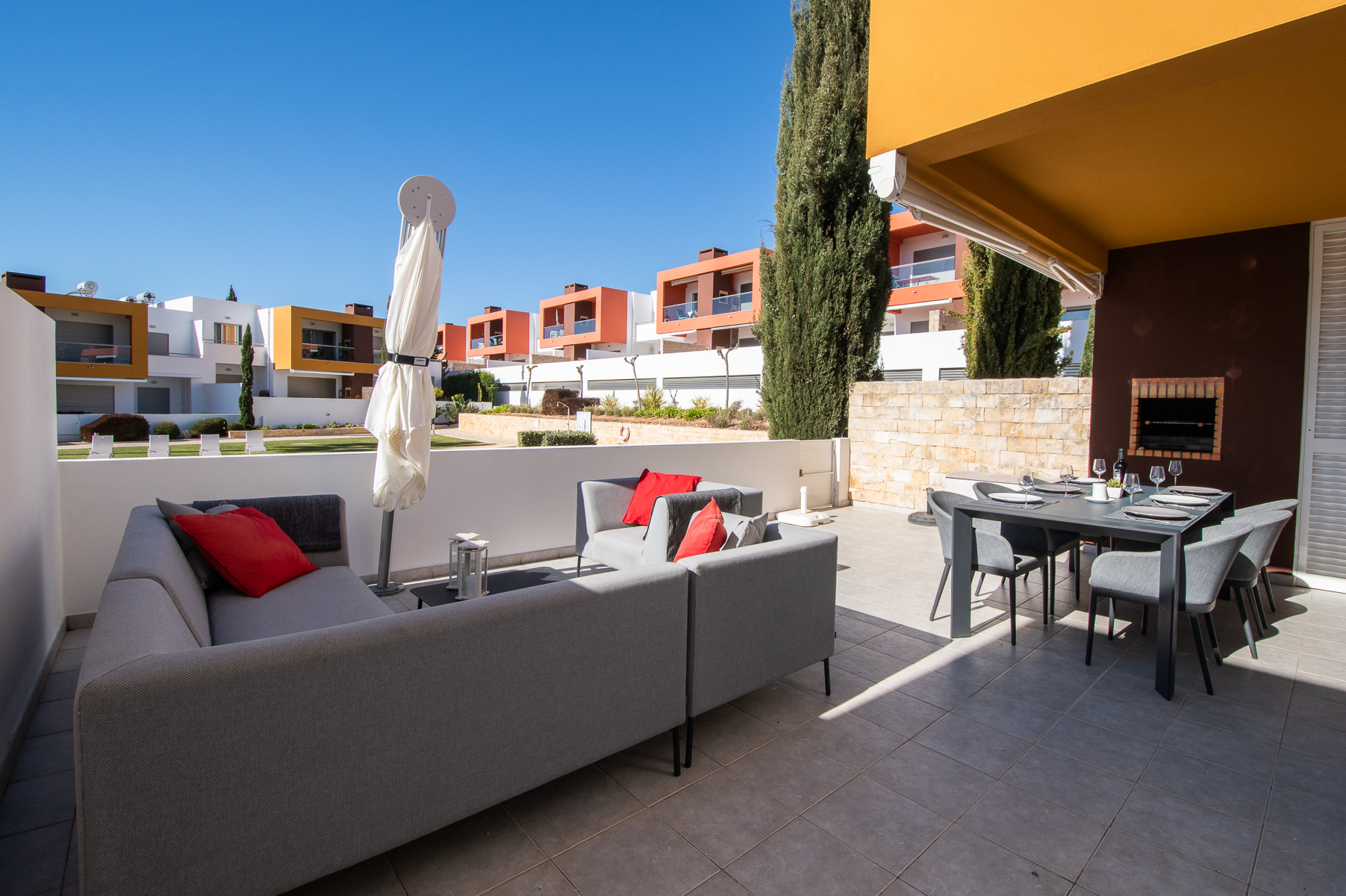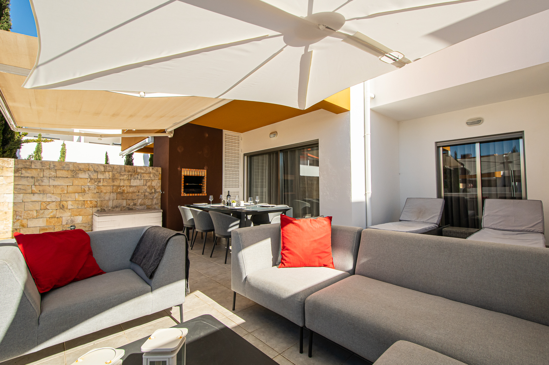 - Comodidades: Aluguer de carro: Essencial, Ar Condicionado, Chaleira, Forno, Máquina de Café, Máquina de Lavar Louça, Máquina de Lavar Roupa, Microondas, Piscina, Torradeira, TV, TV por Cabo, Wi-Fi