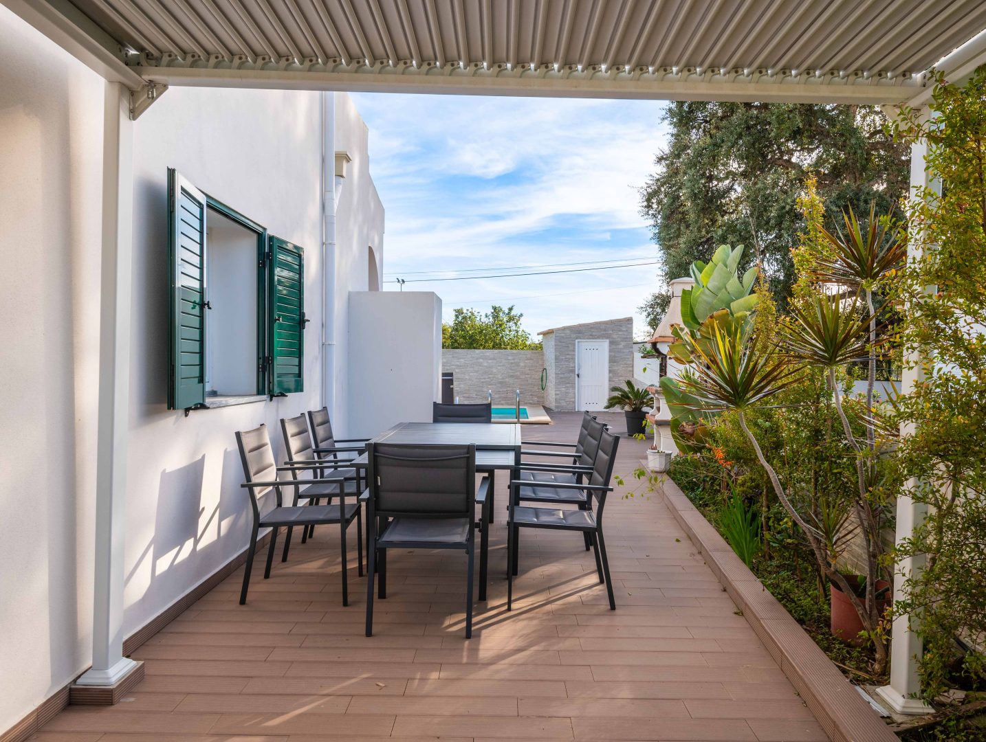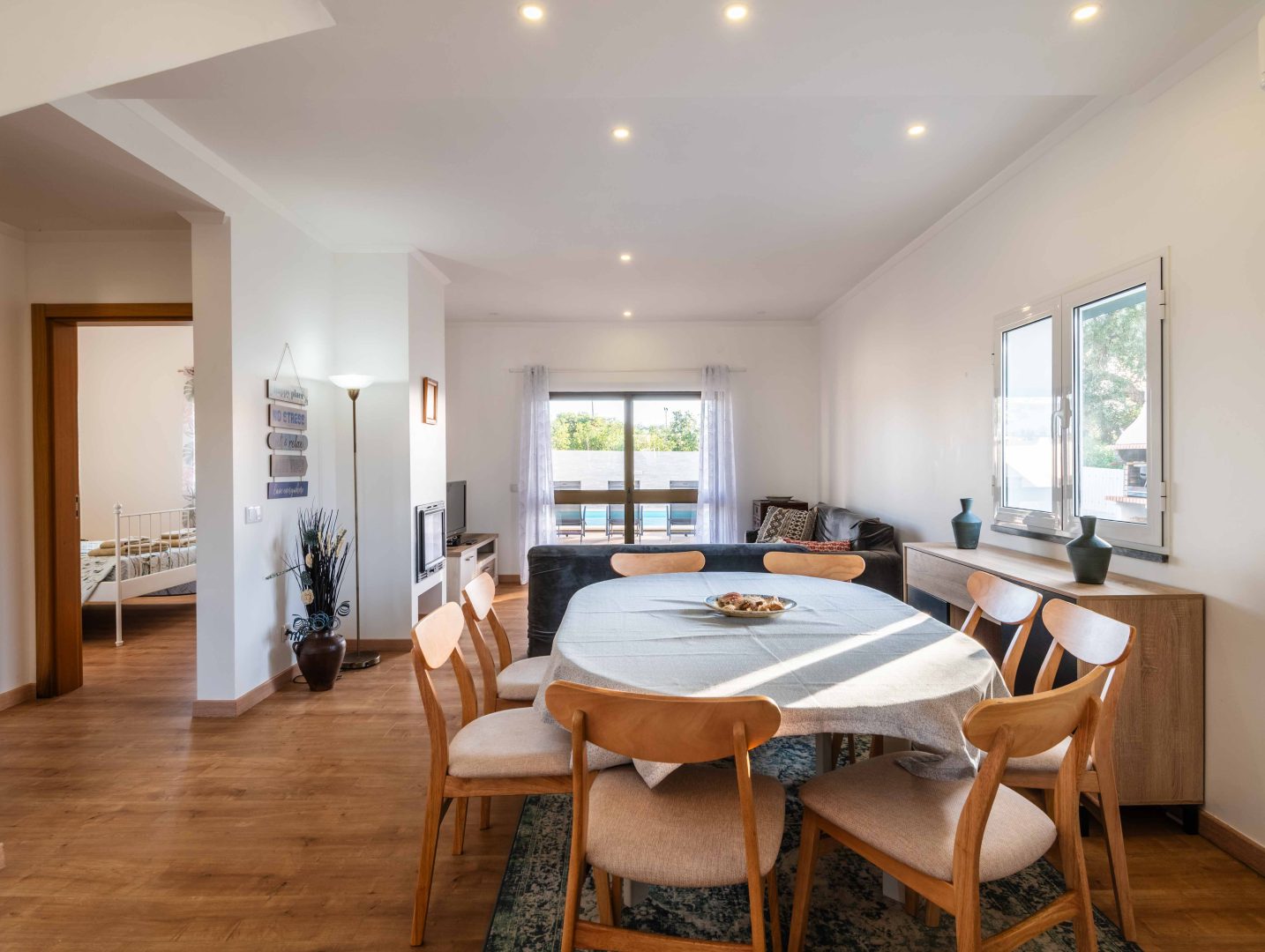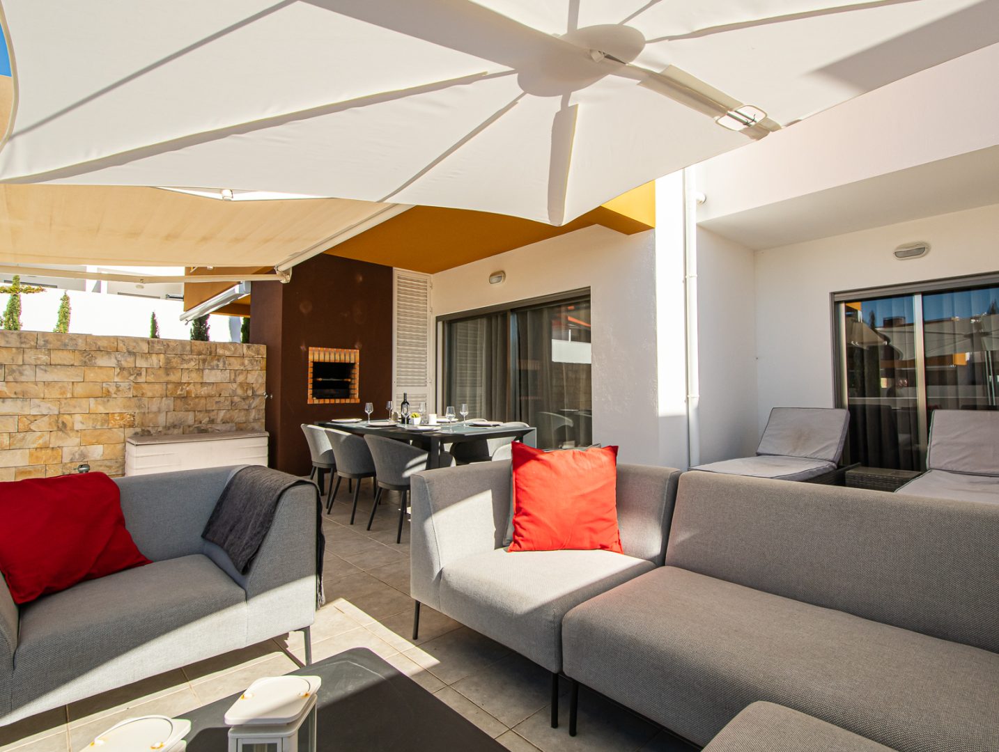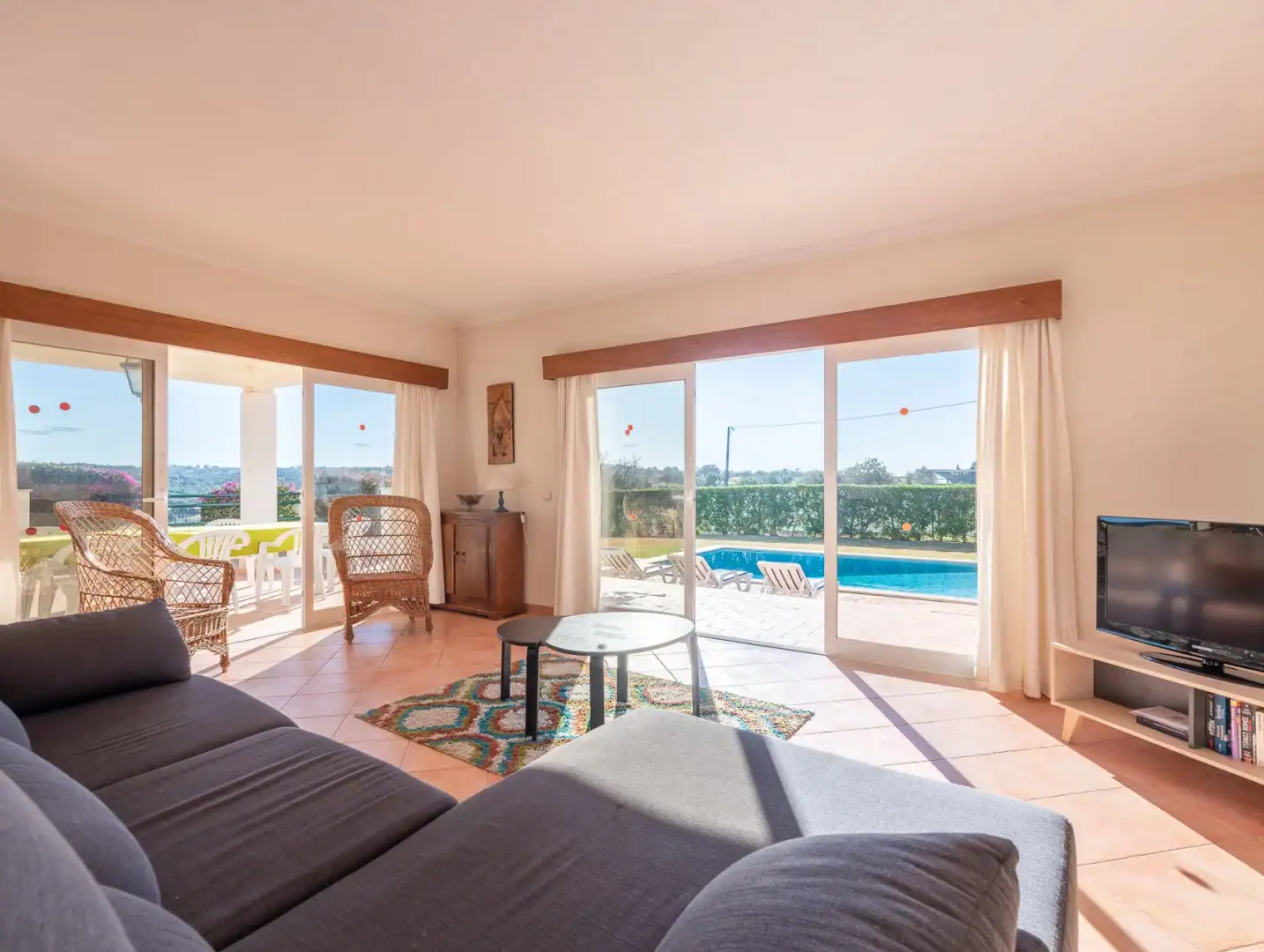 - Comodidades: Aluguer de carro: Essencial, Ar Condicionado, Chaleira, Forno, Máquina de Café, Máquina de Lavar Louça, Máquina de Lavar Roupa, Microondas, Piscina, Torradeira, TV, TV por Cabo, Wi-Fi