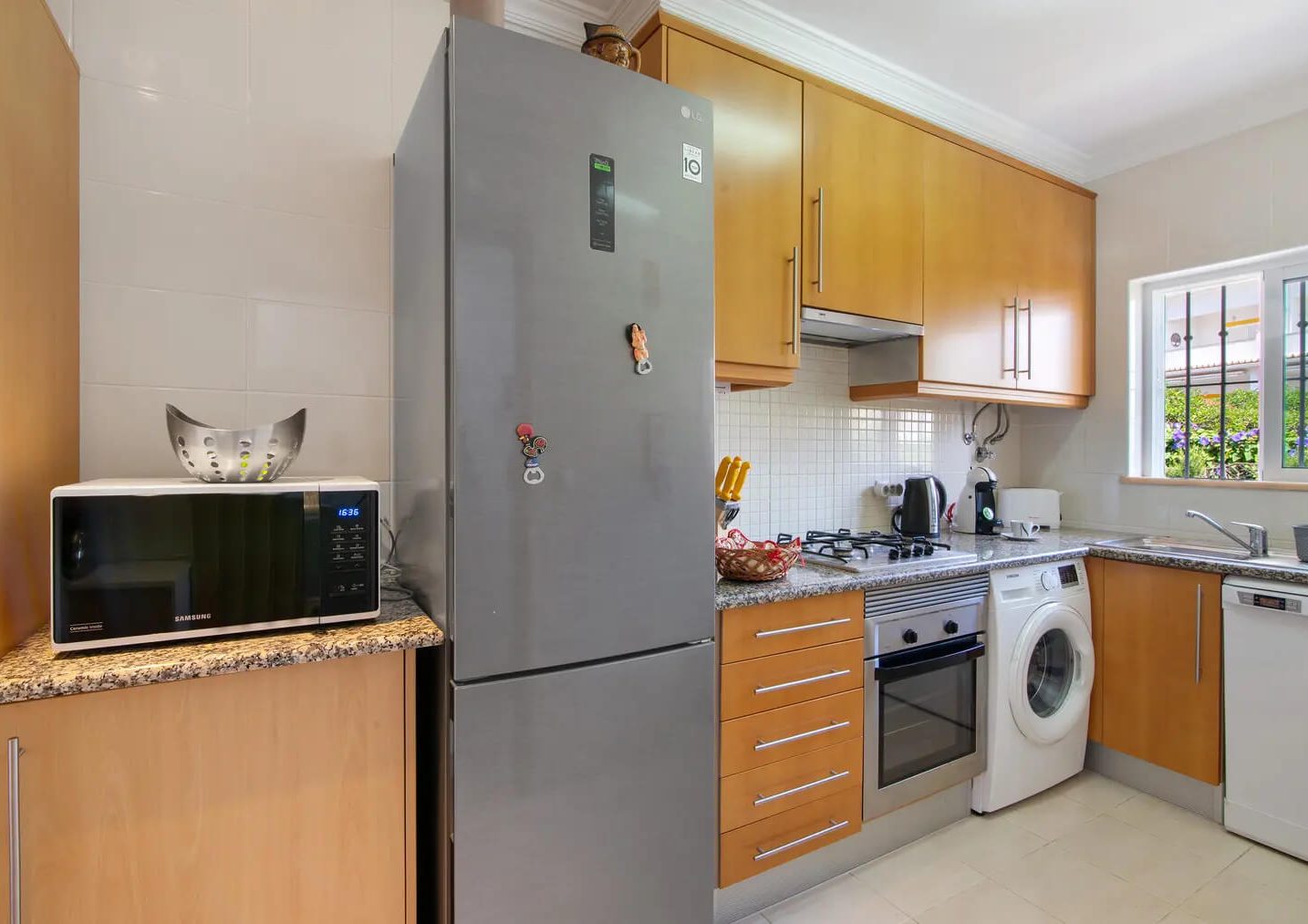 - Comodidades: Aluguer de carro: Essencial, Ar Condicionado, Chaleira, Congelador, Fogão, Forno, Frigorífico, Máquina de Café, Máquina de Lavar Louça, Máquina de Lavar Roupa, Microondas, Piscina, Secadora, TV por Satélite, Wi-Fi