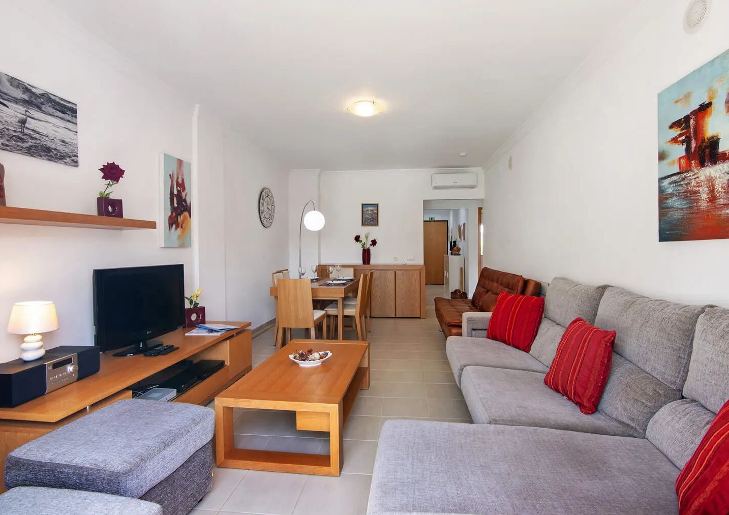 - Comodidades: Aluguer de carro: Recomendado, Ar Condicionado, Chaleira, Forno, Máquina de Café, Máquina de Lavar Louça, Microondas, Piscina compartilhada, Torradeira, TV, Wi-Fi