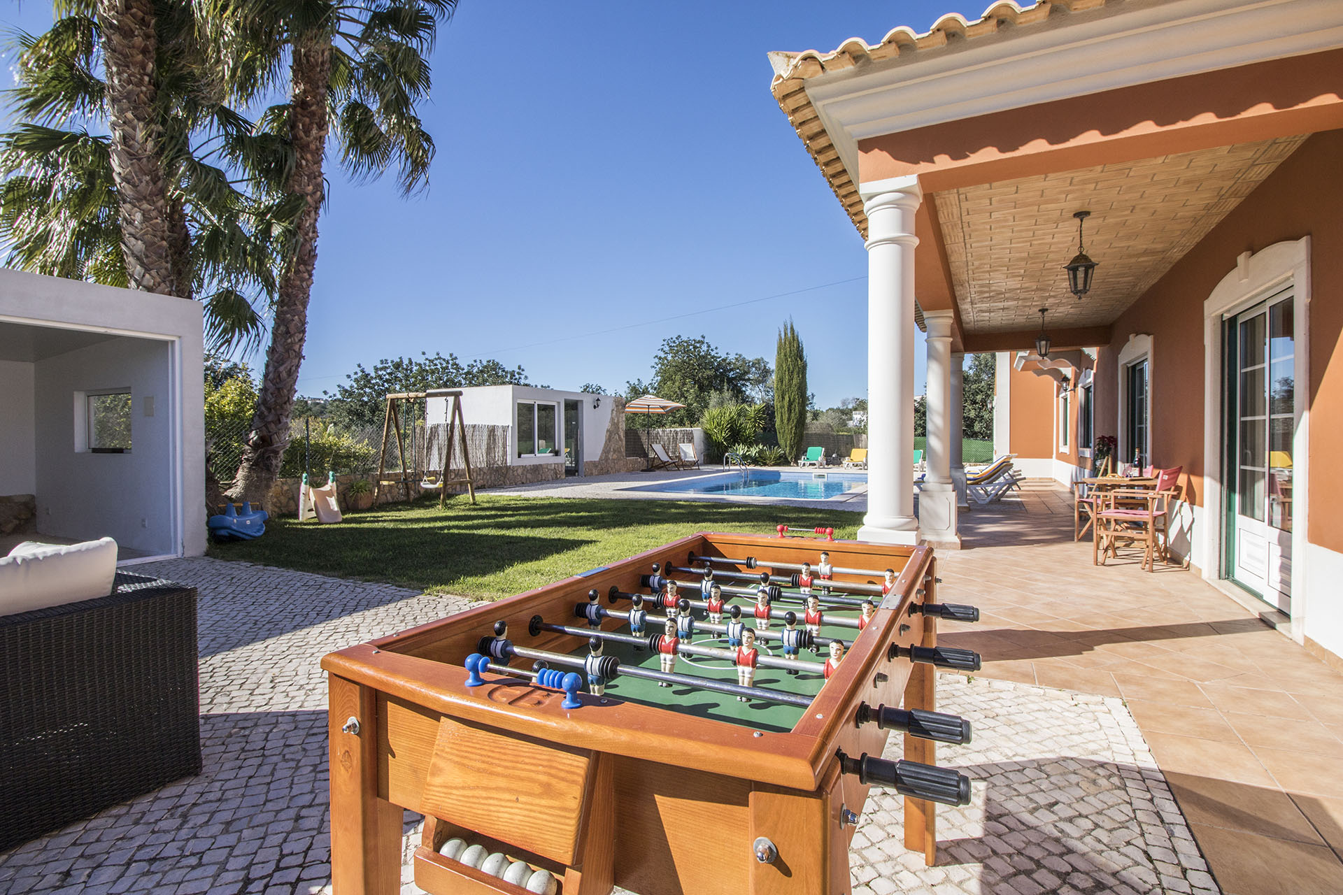 A relva tem um baloiço e outros brinquedos que beneficiam da sombra natural das palmeiras, um local ideal para as crianças se divertirem. O mobiliário exterior faz do jardim um espaço relaxante e agradável para toda a família. O futebol de mesa e o ténis de mesa serão um deleite para os nossos hóspedes e um novíssimo anexo coberto ao ar livre apoiado por uma cozinha moderna e prática permite excelentes churrascos e refeições de Verão.