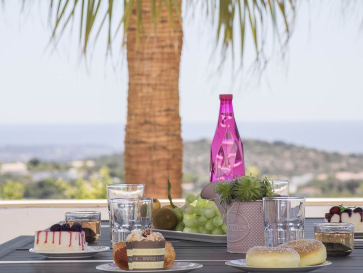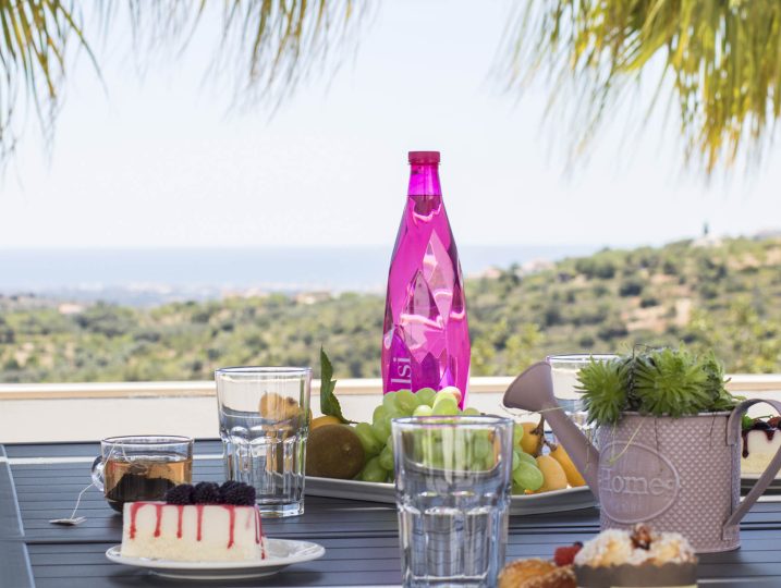 Do outro lado tem uma zona de jantar muito agradável com mesa e algum mobiliário exterior num espaço sombreado e com uma vista magnífica para a costa e o mar.
