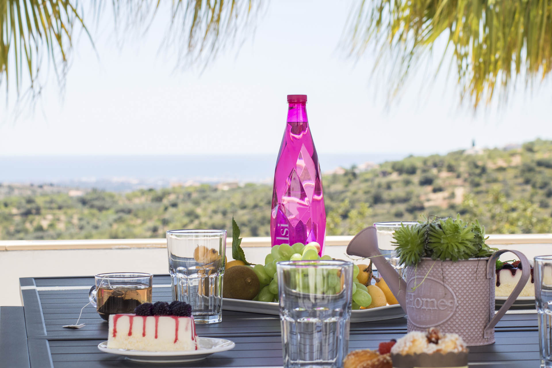 Do outro lado tem uma zona de jantar muito agradável com mesa e algum mobiliário exterior num espaço sombreado e com uma vista magnífica para a costa e o mar.