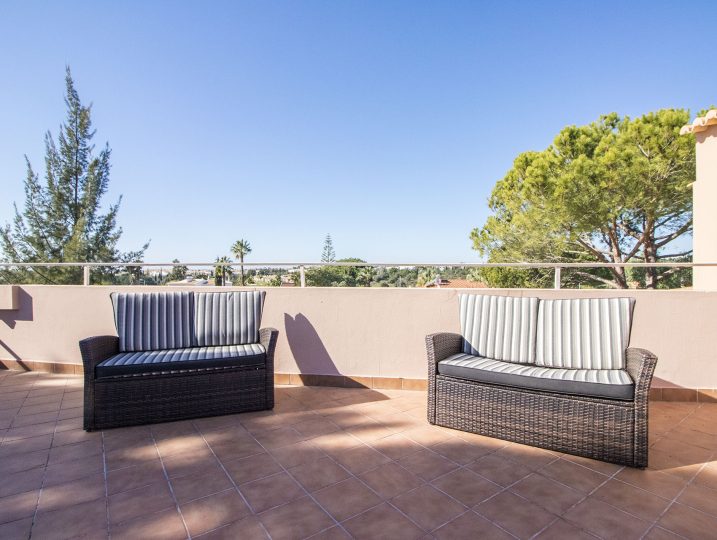 No espaçoso terraço no primeiro andar, algum mobiliário exterior permite desfrutar da magnífica vista e apreciar o pôr-do-sol.