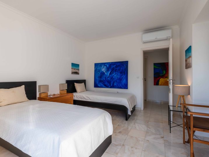 A decoração da villa oferece um ambiente acolhedor e convidativo. Totalmente climatizada, a Villa Viola garante o seu conforto com comodidades modernas, como uma televisão, sofás macios e uma espaçosa área de estar e de jantar. Os quartos bem iluminados, também equipados com ar condicionado, proporcionam um refúgio tranquilo para uma noite de sono repousante. Notavelmente, a villa oferece vistas deslumbrantes sobre o mar e os quartos dão acesso direto a um encantador pátio.