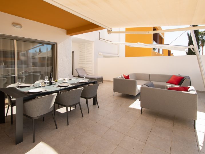 Convenientemente situado a poucos passos de várias comodidades, este apartamento fica a apenas 5 minutos de carro das melhores praias e de um campo de golfe imaculado. Situado num ambiente pitoresco, o complexo oferece jardins adornados com duas piscinas convidativas. Encontrará também um terraço equipado com zona de churrasco, permitindo-lhe saborear deliciosas refeições enquanto desfruta da vista.
