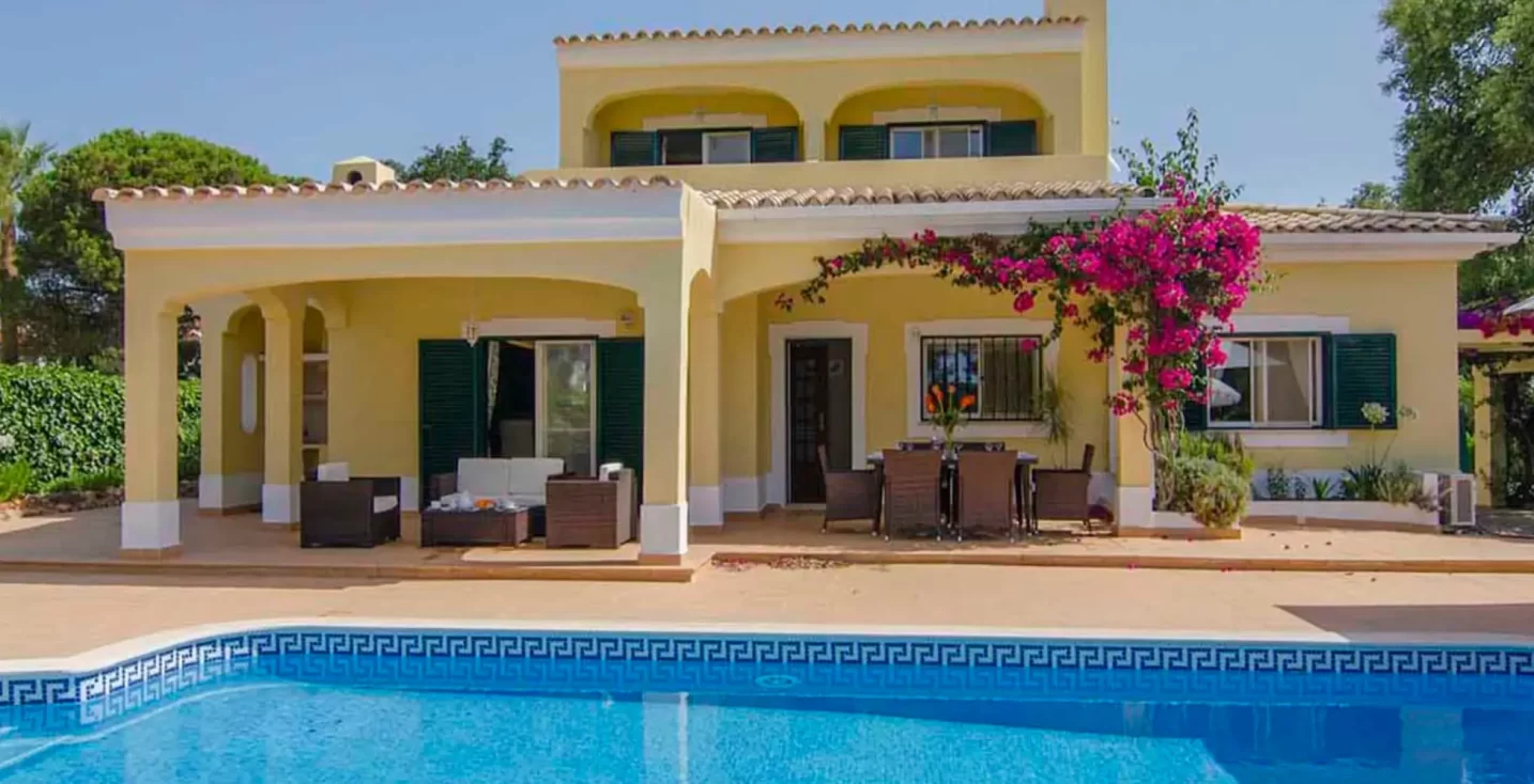 Vivenda de 3 quartos com piscina privada perto de Vilamoura, a apenas 5 minutos a pé do parque aquático Aquashow. Todos os quartos são em suite e totalmente equipados com ar condicionado. O exterior é espaçoso e harmonioso, ideal para uma família de até 6 pessoas.